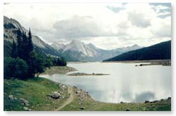 scene in the Canadian Rockies. There are trails for walking, skiing
